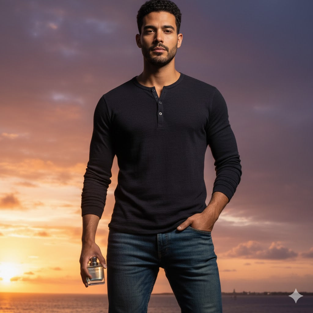 Estela (Almizcle y Cedro): La firma del aventurero. Una base de maderas limpias y almizcle asegura que la fragancia tenga una estela duradera y masculina, tan sólida como el casco de un yate.