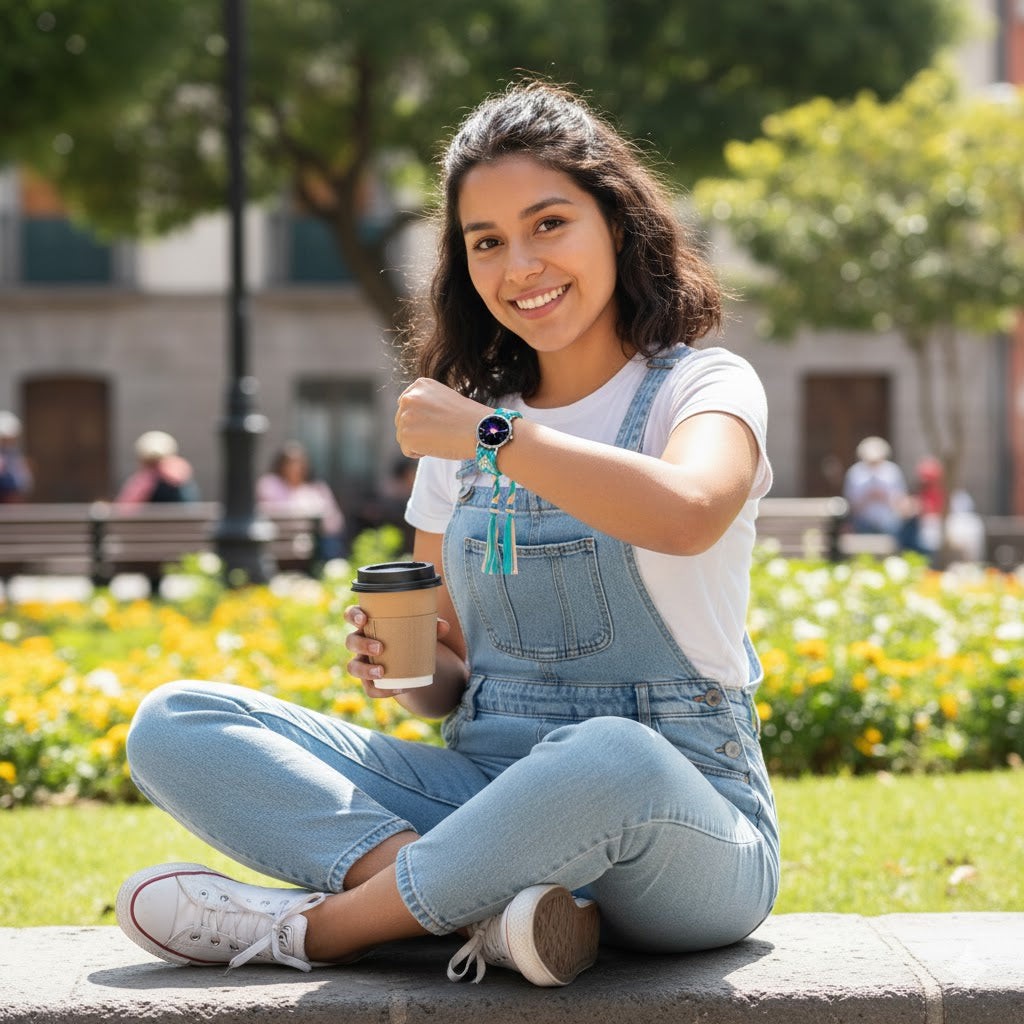 Esto no es un simple reloj; es un amuleto para la soñadora. El Reloj "Nébula Mística" captura la maravilla de una galaxia distante en su esfera, enmarcada en un nítido tono plateado. La correa, un vibrante tejido artesanal en frescos tonos turquesa y coral, es un abrazo de arte popular y confort. Es la pieza perfecta para el espíritu libre que lleva su magia en la muñeca. Un diseño de Aura Urbana para el alma creativa.