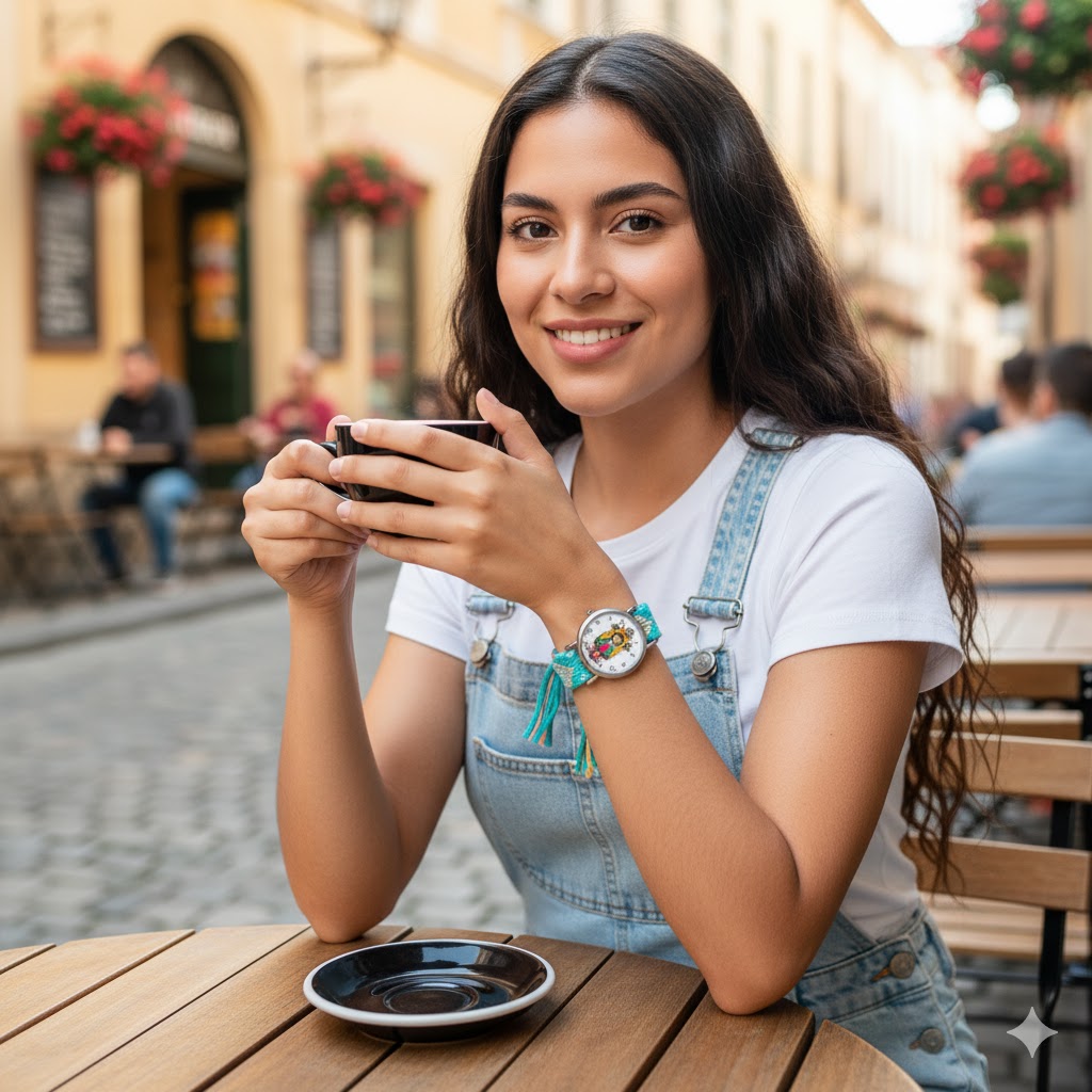 Esto es más que un reloj; es un amuleto de fe llevado con arte. La icónica Virgen de Guadalupe se reinterpreta en un lienzo de 4 cm, lleno de color y vida. Es una pieza que te conecta con tus raíces y tu espiritualidad, mientras el vibrante tejido artesanal de la correa abraza tu muñeca con ternura. Es el sello de Aura Urbana para la mujer que lleva su fe con un estilo bohemio y un corazón auténtico.